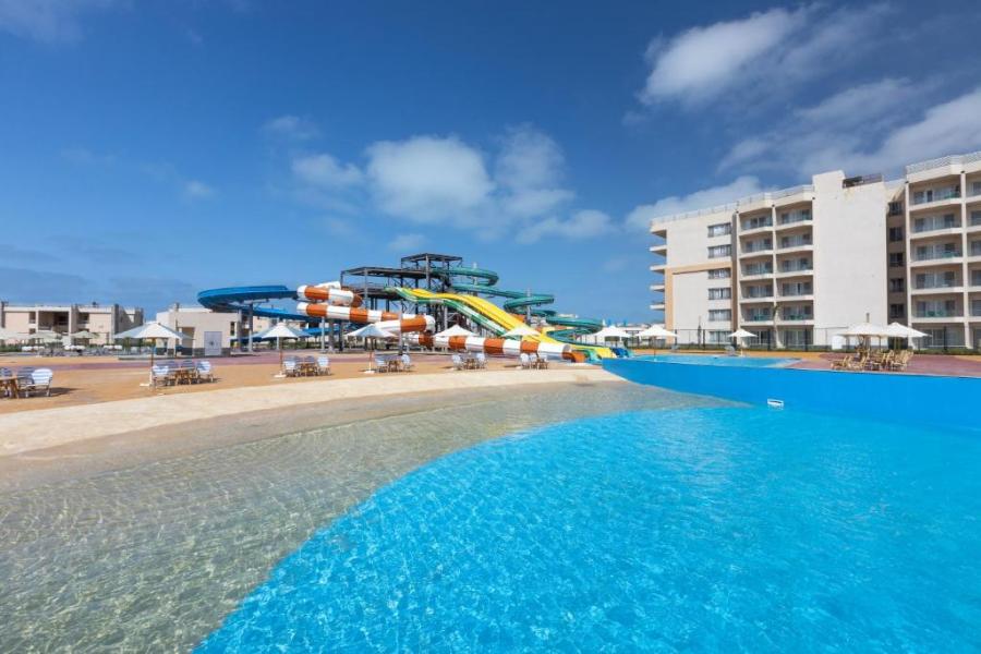 Роскошный курортный отель на средиземноморском побережье Египта, примерно в 115 км к западу от Александрии. Большая территория, современные номера, частный песчаный пляж, аквапарк. Для комфортного отдыха всей семьей.
