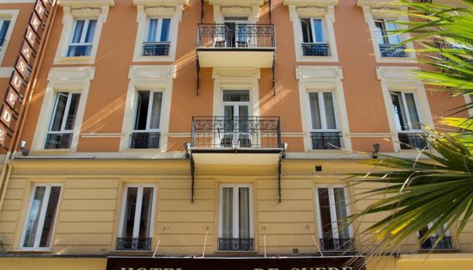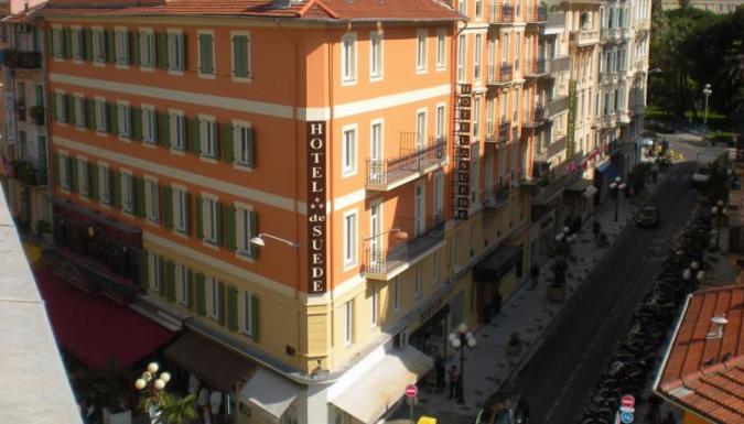 Hotel de Suede -- это гостеприимный 3-звёздочный отель, предлагающий комфортабельные номера в центре Ниццы. Отличительными чертами являются бесплатный Wi-Fi и превосходное расположение рядом с площадью Массена и Английской набережной. Знаменитая Английская набережная, растянувшаяся на несколько километров вдоль побережья Ниццы. Славится своими галечными пляжами, популярными кафе, роскошными апартаментами и легендарными отелями, демонстрирующими превосходные примеры архитектуры Прекрасной эпохи и современности. Среди ближайших достопримечательностей -- музей Массена, музей изящных искусств, площадь Массена и красоты Старого Города. Расположенная поблизости трамвайная остановка Massena обеспечивает лёгкий и быстрый проезд в другие популярные места Ниццы. Отель занимает традиционное среднеэтажное здание с терракотовым фасадом и раздвижными ставнями. На всей территории отеля работает бесплатный Wi-Fi. Номера Standard современно оформлены с использованием красных тонов, ковров, мебели из тёмного дерева и панорамных окон. В номерах есть кондиционер, звукоизоляция, сейф, телевизор с плоским экраном и спутниковое ТВ. Смежная со спальней ванная комната оборудована душевой кабиной или ванной со встроенным душем. Каждое утро подаётся завтрак шведский стол". Рядом с отелем находится множество баров и ресторанов." В отеле круглосуточно работает стойка регистрации. Рядом с отелем есть платная автостоянка.
