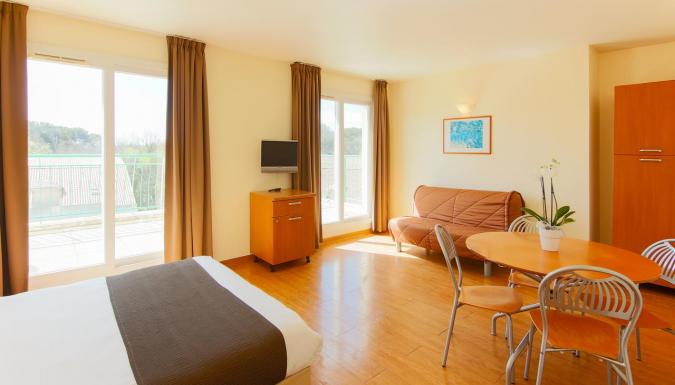Апартаменты и номера-студио оформлены в современном стиле и располагают кондиционером, гостиной с телевизором со спутниковыми каналами, а также собственной ванной комнатой.