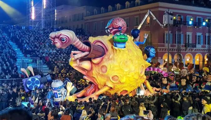 Карнавал в Ницце – Первый Международный Фестиваль во Франции. Две недели праздника в городе: дневные и ночные парады, цветочные битвы, развлечения и шоу, большие фантастические головы.