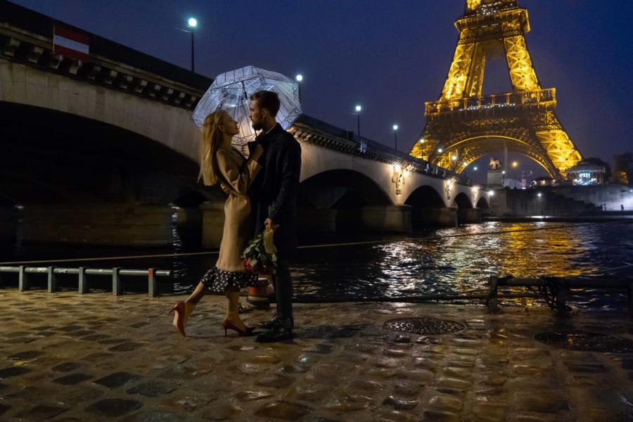 Солнце садится, наступает темнота и на башне загораются тысячами сверкающих огней, придавая ей волшебный и чарующий вид. На башню вы будете смотреть с площади Трокадеро в районе Ла-Де-Франс. А в руках у вас будет бокал шампанского. Это лучшее время, чтобы загадать желание!