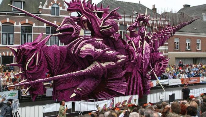 Завтрак. Переезд в Зюндерт. Официальное открытие и начало театральных процессий в Зюндерте в 10:00. Первый парад через площадь в 13:30, второй в 16:30. Выставка украшенных платформ откроется в 18:00 (вх.билет доплата). 20 городских районов соревнуются между собой в создании лучшей цветочной скульптуры. Для изготовления скульптур используют тысячи георгин, выращенных специально для парада. А подготовка к такому масштабному действию начинается еще с мая. Местные жители так любят этот парад, что добровольно работают сутки напролет над созданием грандиозных и красочных скульптур.