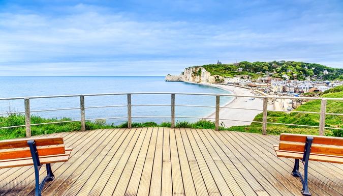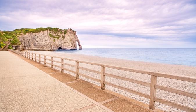 Переезд в Этрета. Феерические меловые скалы. Место, где творили Клод Моне и Гюстав Курбе. Подъем наверх для незабываемых панорам.