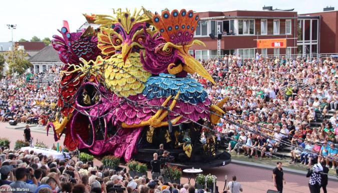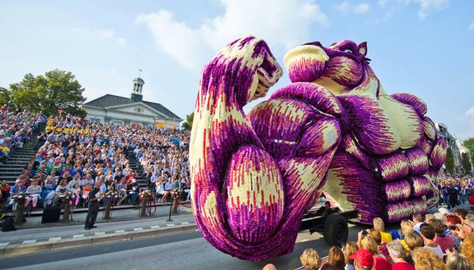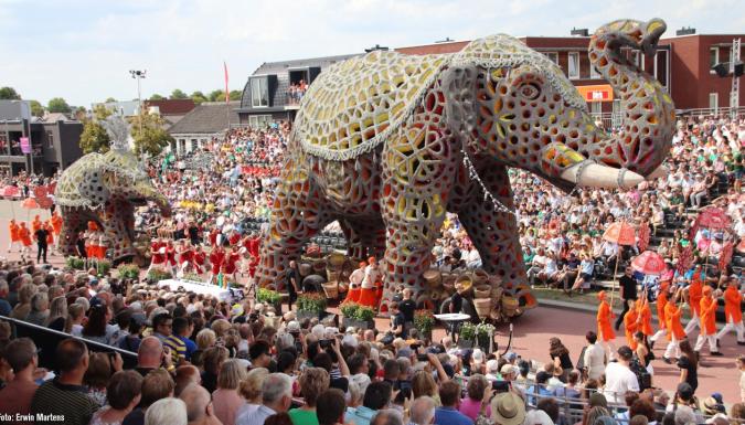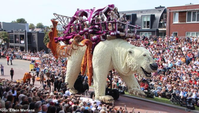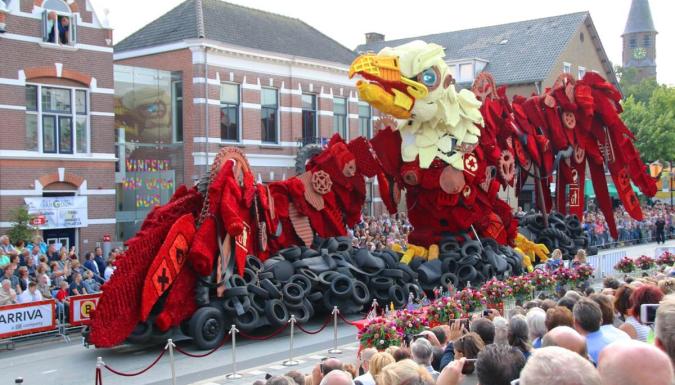 Переезд в Зюндерт. Официальное открытие и начало театральных процессий в Зюндерте в 10:00. Первый парад через площадь в 13:30, второй в 16:30. Выставка украшенных платформ откроется в 18:00 ( вх.билет доплата). 20 городских районов соревнуются между собой в создании лучшей цветочной скульптуры. Для изготовления скульптур используют тысячи георгин, выращенных специально для парада. А подготовка к такому масштабному действию начинается еще с мая. Местные жители так любят этот парад, что добровольно работают сутки напролет над созданием грандиозных и красочных скульптур.
