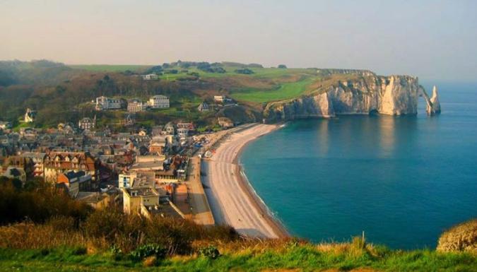 Городок ЭТРЕТА – раньше маленькая рыбацкая деревушка, а затем - курорт с прекрасными галечными пляжами на Алебастровом побережье Ла Манша. Удивительной красоты отвесные скалы с природными арками — один из самых красивых пейзажей Франции. Не зря эти скалы - визитная карточка в работах Клода Моне.