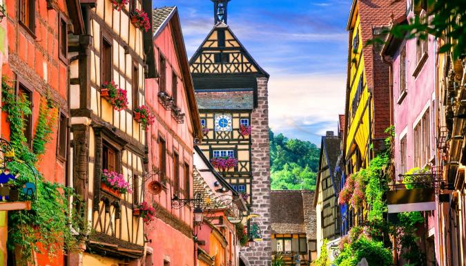 Переезд в Риквир. Это поистине жемчужина Эльзаса, очаровательный средневековый городок, который словно перенесен из другой эпохи. Прогуливаясь по старому городу Риквира, ощущаешь себя в волшебной сказке! Узкие мощеные улочки обрамлены красивыми фахверковыми домами, украшенными резными деталями и балконами. Величественные романские церкви и впечатляющая Башня Часов возвышаются над городом, придавая ему средневековый шарм.
