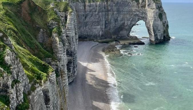 Затем направляемся к живописным скалам Этрета – тем самым, которые вдохновляли импрессионистов. Великолепные белоснежные арки, шум волн, бескрайний горизонт… Это место словно сошло с картин