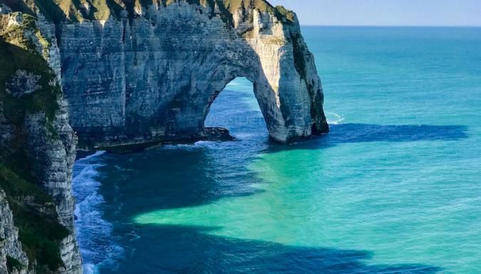 Переезд в Этрета. Феерические меловые скалы. Место, где творили Клод Моне и Гюстав Курбе. Подъем наверх для незабываемых панорам.