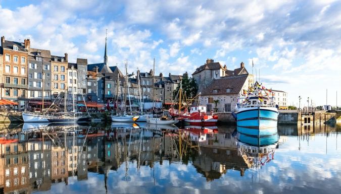 Переезд в Онфлер, прогулка по городу с сопровождающим, старый порт, деревянная церковь Святой Екатерины.