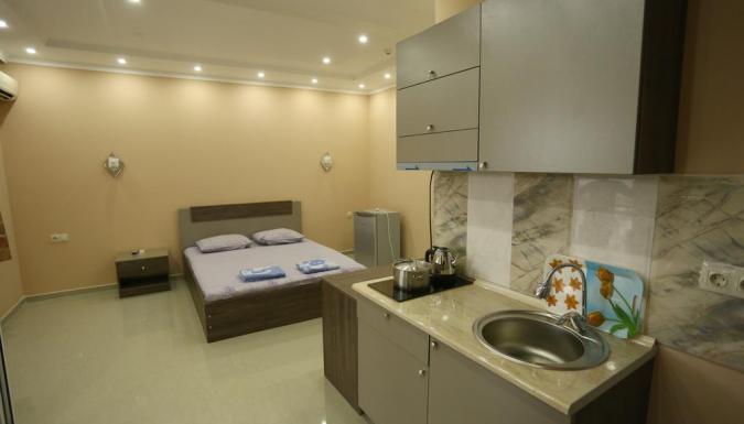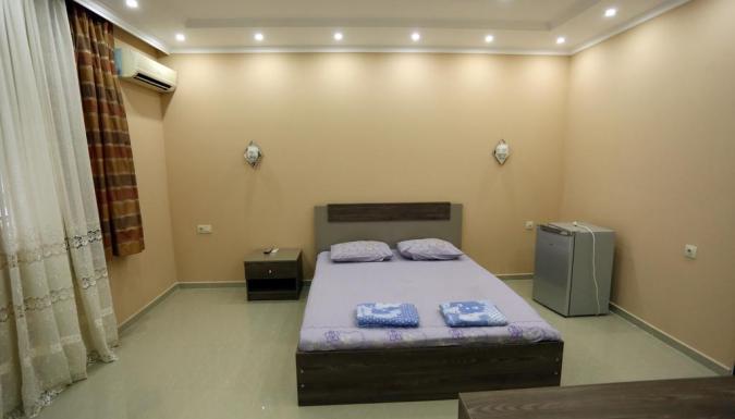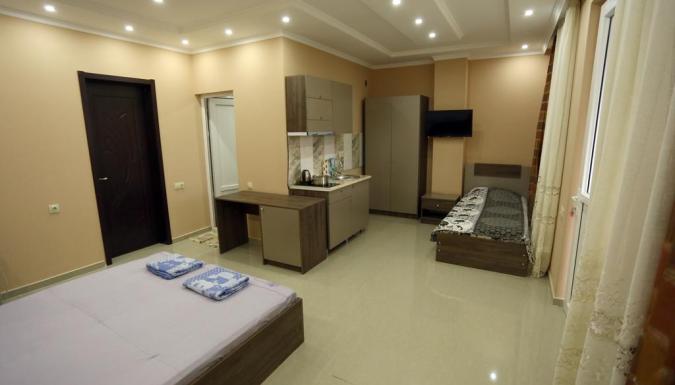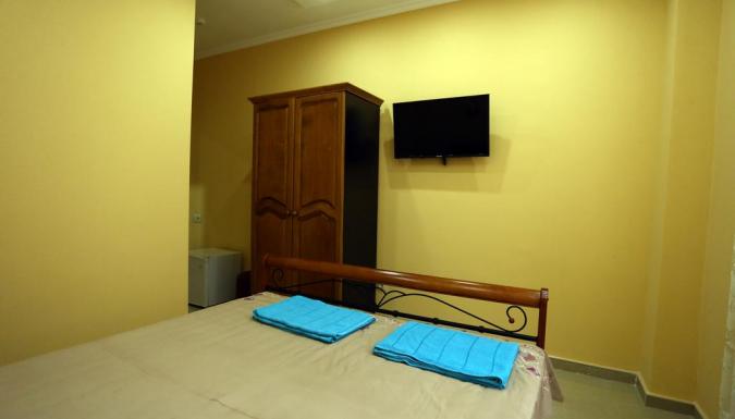 Кафе с блюдами европейской и грузинской кухни на территории. Спокойный, уютный отель с террасой и садом.