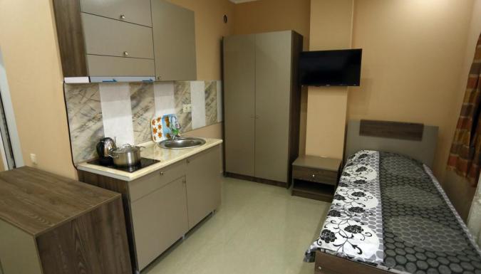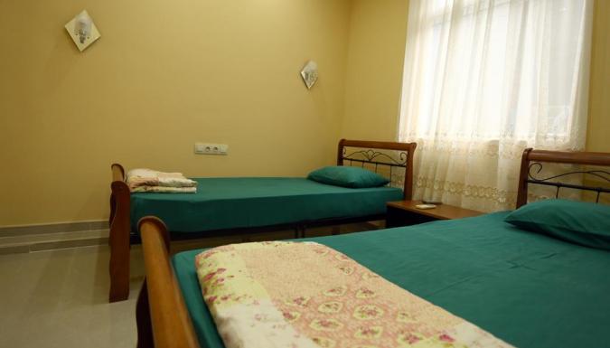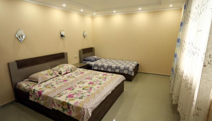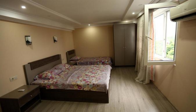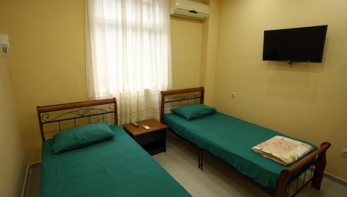 Оснащён лифтом. Есть семейные трёх-, четырёхместные номера.