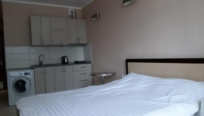 - Есть кухни в номерах