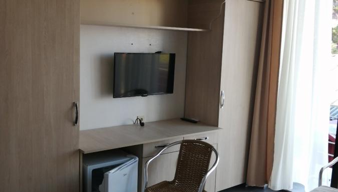 В каждом номере балкон с видом на море, спутниковое ТВ, МИНИ-БАР, посуда для приготовления чая и кофе, шкаф, душ и туалет, кондиционер, фен. Полотенца.