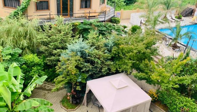 - Красивая территория (много тропических растений, бассейн, балконы, гамаки)