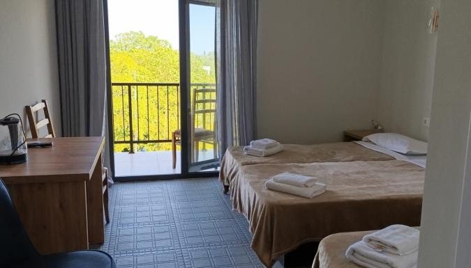 Большая зеленая территория с зонами отдыха и зоной барбекю, где можно провести время и насладиться грузинским гостеприимством. В кафе отеля можно заказать шашлык или любое грузинское блюдо. Также у хозяина отеля есть своя винодельня, где можно приобрести настоящее грузинское вино. На территории есть детская площадка, где дети могут весело и безопасно провести время, пока родители наслаждаются отдыхом. Любители активного отдыха оценят настольный теннис, спортивный зал, а также открытую баскетбольную площадку на пути к пляжу.