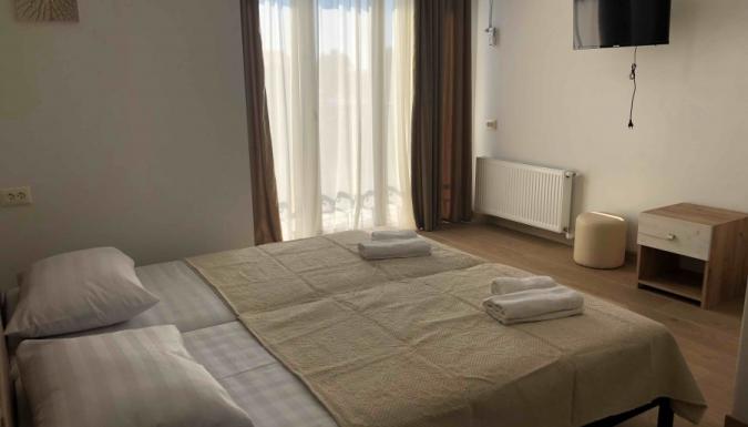 Расположение: отель расположен на курорте Уреки, в 5ти минутах ходьбы от моря, вдали от шумной улицы. Недалеко расположены магазины и кафе. Курорт известен своими магнитными песками темно-серого цвета, которые обладают лечебными свойствами. магнитные пески имеют показатель намагниченности до 70%. Это делает пляж настоящим природным санаторием, потому что песок лечит проблемы с сердцем и сосудами, опорно-двигательным аппаратом, легкими. В Уреки рекомендуют приехать для восстановления после различных травм, особенно эффективно песок помогает детям с подобными заболеваниями.