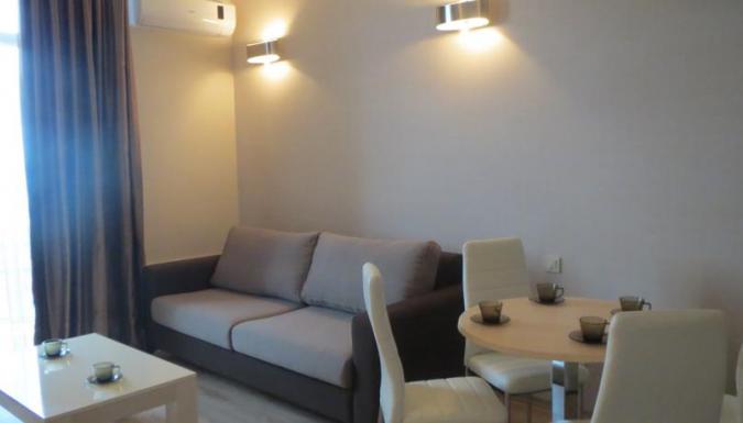 Апартаменты располагают кондиционером, балконом с видом на море, стиральной машиной, гостиным уголком и феном.