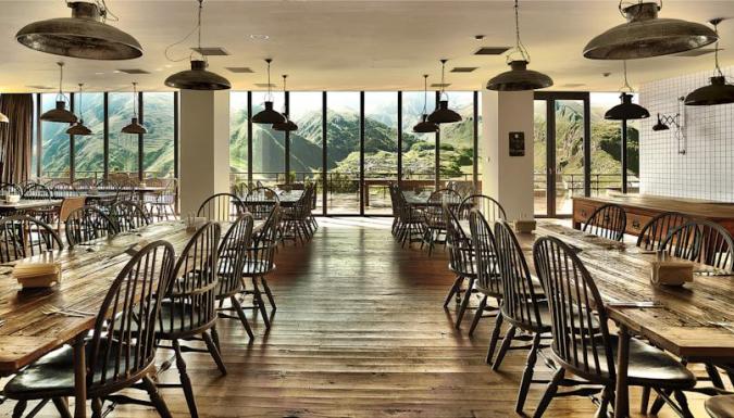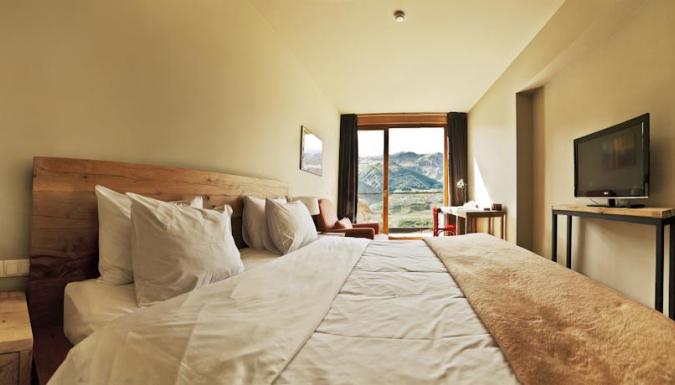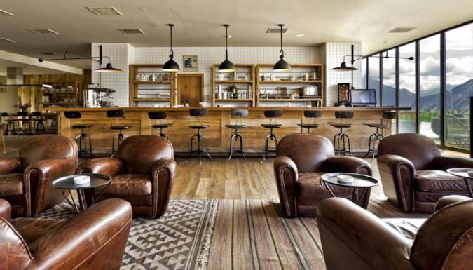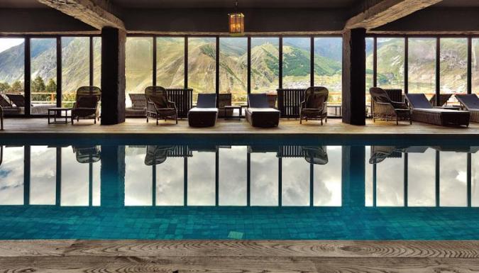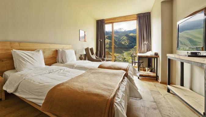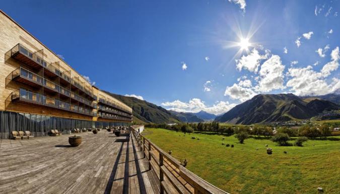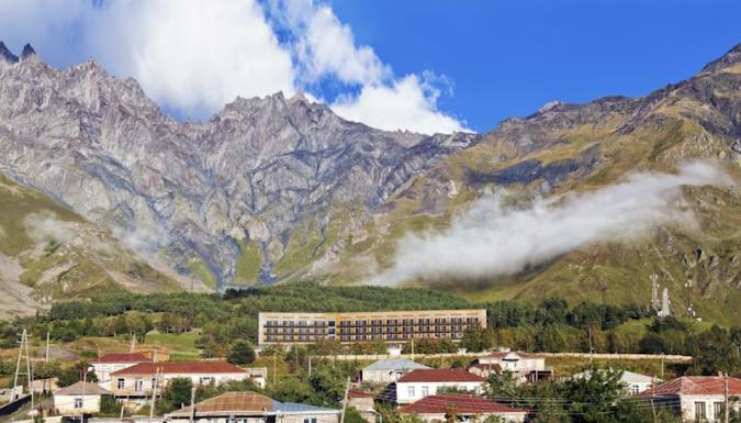 В прекрасном ресторане отеля Kazbegi, обставленном деревянной мебелью, готовят блюда интернациональной кухни. В лобби-баре можно заказать напитки и почитать книги. Еду подадут на террасу с видом на гору.