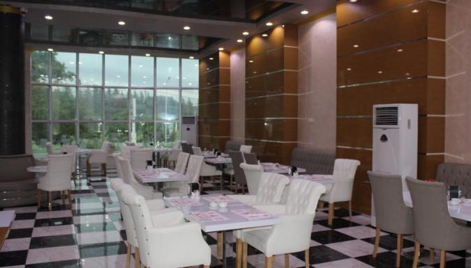 В ресторане отеля подают блюда грузинской и европейской кухни. Гостям предоставляются принадлежности для барбекю. Также в отеле работает бар. По запросу осуществляется доставка еды и напитков в номер и сервируется завтрак. В отеле установлены столы для бильярда и настольного тенниса.
