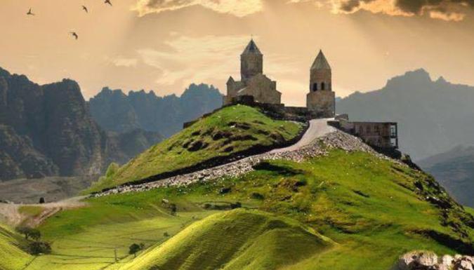 Последним пунктом нашей поездки будет церковь Гергети, расположенная на высоте 2 170 м у подножья Казбека вдоль Военно-Грузинской дороги в грузинской деревне Гергети, прямо над посёлком Степанцминда. Построенная в XIV веке святыня является единственным крестово-купольным храмом в области Хеви. Подле храма сохранилась средневековая колокольня. - 5