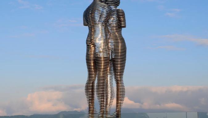 Статуя «Али и Нино» - скульптурное произведение, достигающее в высоту семи метров. Оно получило известность из-за своеобразия исполнения: фигуры мужчины и женщины медленно двигаются друг к другу, соприкасаются, сливаются и снова расходятся.