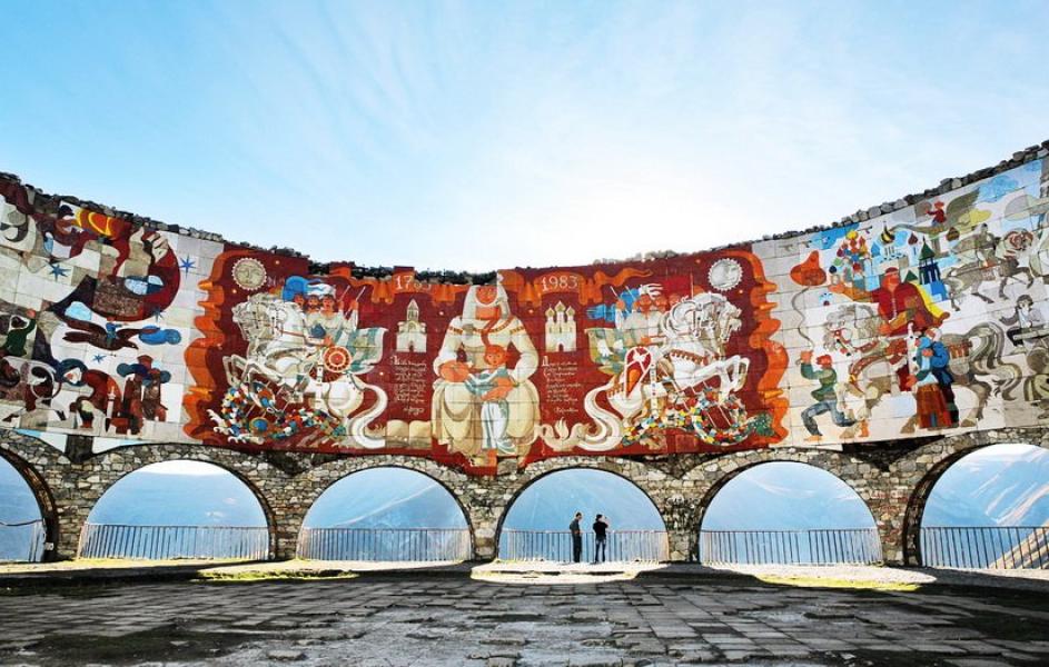 Смотровая площадка Арка Дружбы народов, где открывается потрясающий вид на ущелье Арагви и самый бесподобный вид на круглую гору Микети;