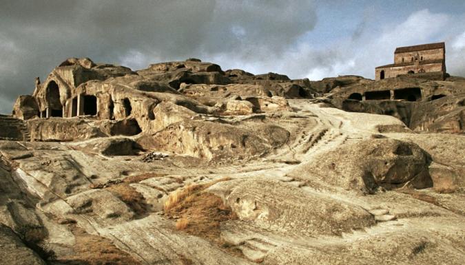 Наша экскурсия начнется с Уплисцихе. Если верить легендам, город в скале решил вырубить правнук самого Ноя. Мы не можем точно сказать, соответствует ли эта версия действительности, но археологи ручаются — Уплисцихе около трех тысяч лет.