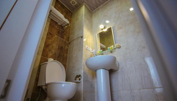 -ванная комната + туалетно-косметические принадлежности + тапочки