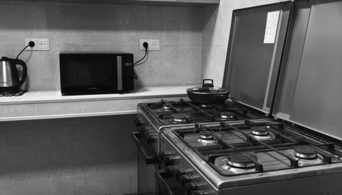 На этажах есть: гладильная доска и утюг, фен, кухня;