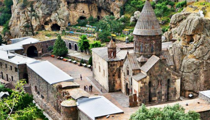Посещения монастыря Гегард. Монастырь, первоначально называвшийся Айриванк, что означает «Пещерный монастырь», внесен в список объектов Всемирного наследия ЮНЕСКО с усиленным статусом защиты.