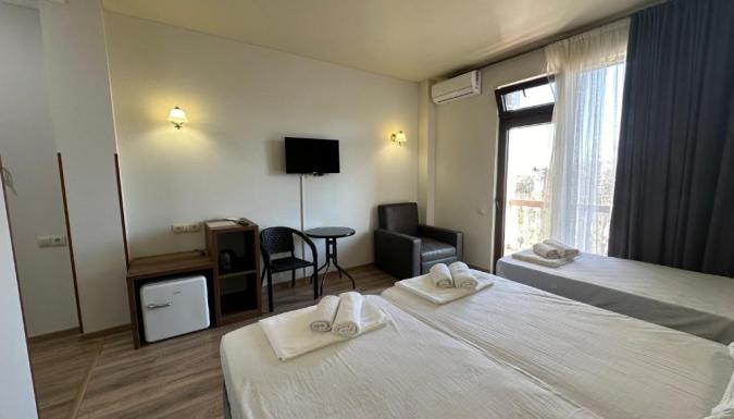 Majestic — это отель с 4 звездами на первой линии города Кобулети. В распоряжении гостей сад, терраса и ресторан. В распоряжении гостей семейные номера и открытый бассейн. Гости могут обратиться к сотрудникам круглосуточной стойки регистрации, воспользоваться трансфером от/до аэропорта или доставкой еды и напитков, а также подключиться к бесплатному Wi-Fi на всей территории.