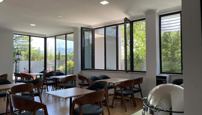 Питание: шикарный завтрак (шведский стол) включен в стоимость. За дополнительную плату можно заказать питание по меню. Можно воспользоваться чайником.