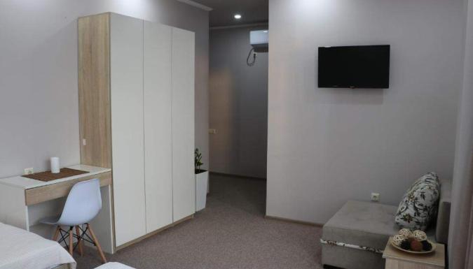 2-3-4-х местные номера: собственная ванная комната (туалет, умывальник, душ), сейф, фен, кондиционер, шкаф для одежды, письменный стол, телевизор с плоским экраном. Бесплатный Wi-Fi.