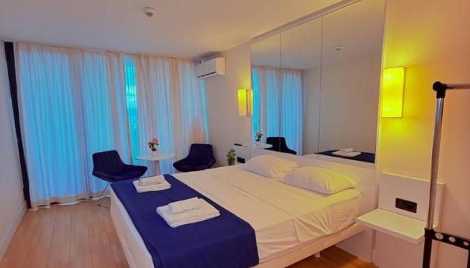 Отель расположен на первой береговой линии в Батуми. Среди удобств есть обеденная зона, хорошо оборудованная мини-кухня и собственная ванная комната с душем, бесплатными туалетно-косметическими принадлежностями и феном. C балкона открывается вид на море. Во всех единицах размещения есть телевизор с плоским экраном с кабельными каналами. Также имеются холодильник, плита и чайник.