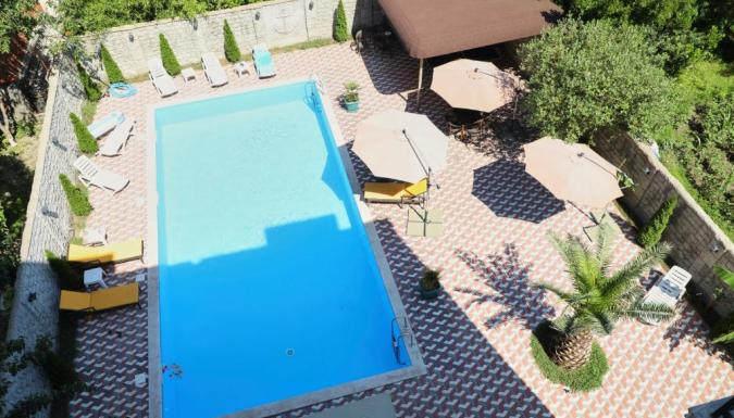 Расположен в городе Кобулети, всего в 200 метрах от пляжа. На территории бассейн, сад, зона отдыха. Туристы могут воспользоваться баром, а также рестораном, где подают блюда национальной кухни. Можно заказать комплексное питание недорого.