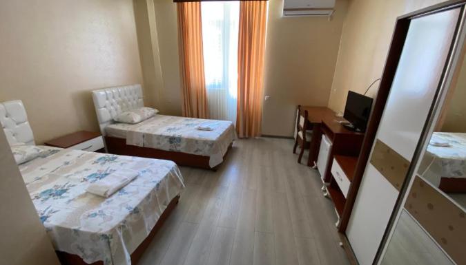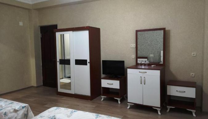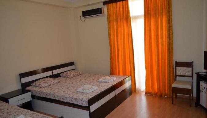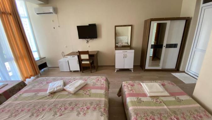 Номера стандарт: 2/3/4 х местные номера душ, туалет, кондиционер, холодильник, телевизор, фен, чайник, полотенца. В каждом номере балкон с летней мебелью.