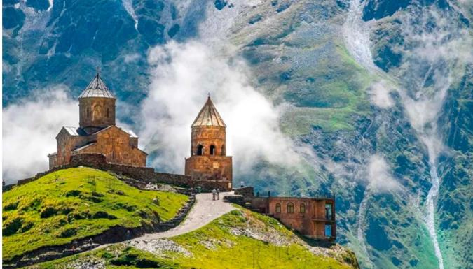 Далее мы остановимся у "Арки Дружбы", которая была построена, как смотровая площадка в честь 100-летия подписания Георгиевского трактата. Последним пунктом нашей поездки будет Гергети, расположена на высоте 2170 м у подножья Казбека вдоль Военно-Грузинской дороги в грузинской деревне Гергети, прямо над посёлком Степанцминда. Построенная в XIV веке святыня является единственным крестово-купольным храмом в области Хеви. Подле храма сохранилась средневековая колокольня. - 5