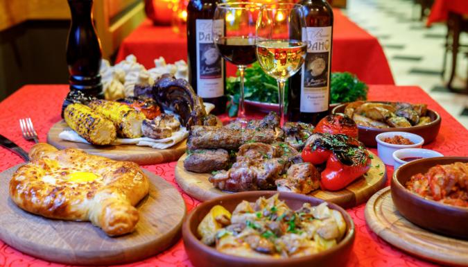 Далее для желающих обед в национальный ресторан, где на большом столе вас ждут вкуснейшие блюда грузинской кухни: лобиани, хинкали, шашлык, хачапури и вино (доплата 15 $/чел).