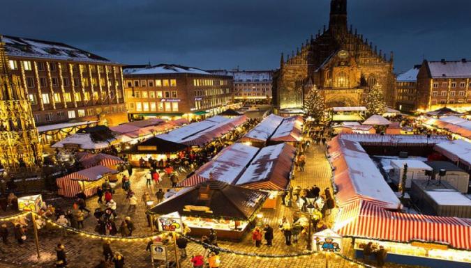 Нас приглашает на прогулку самая знаменитая рыночная площадь страны с Фонтаном сорока фигур, Дом Дюрера, Дворец Правосудия, замок Кайзербург. Нюрнберг считается Рождественским городом Германии №1. Здесь открывается один из самых больших и старейших базаров в стране. Здесь продаются традиционные рождественские сувениры: елочные украшения, изделия из стекла, деревянные игрушки, куклы, серебряные украшения… На базаре играют шарманки, жарятся каштаны и знаменитые немецкие сосиски. На каждом углу можно купить чашечку горячего глинтвейна - традиционного рождественского напитка, сахарную вату, печеные яблоки, имбирные и медовые пряники "Lebkuchen", жареные в сахаре миндаль по-венски, грецкие орехи и арахис….