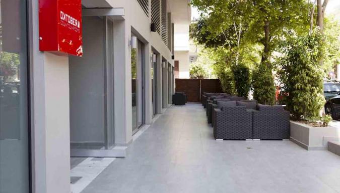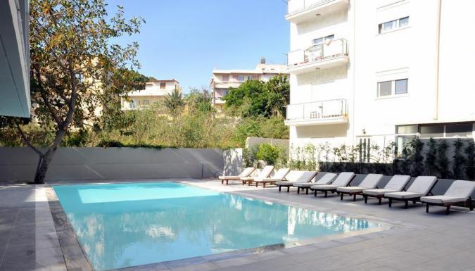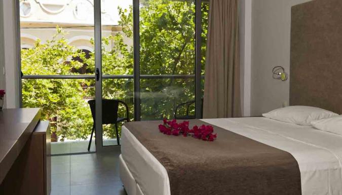 Небольшой экономичный отель в центре города Родос состоит из трехэтажного здания.