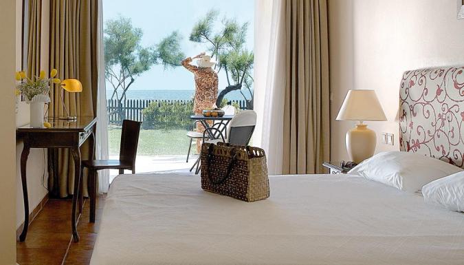 - Элегантные номера и люксы отеля оформлены с большим вкусом. В их оформлении использованы изысканные дизайнерские ткани. Из всех номеров открывается захватывающий вид на Фракийское море.