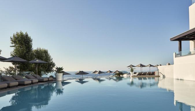 Расположен на холме, великолепные виды, выбор комфортабельных номеров, рестораны, бары, бассейны, общие и частные бассейны, спа, спорт, сервис высокого уровня.