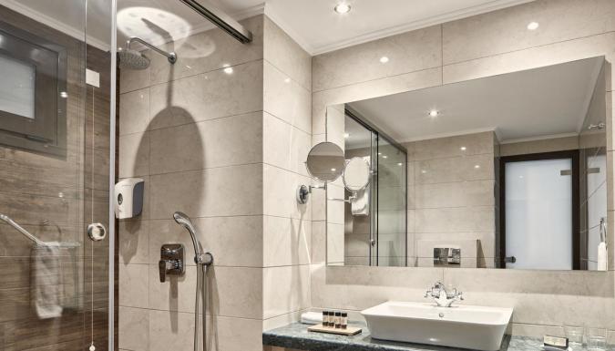 Wi-Fi интернет, балкон/терраса, банный набор, ванна/душ, кондиционер, мини-холодильник, набор для приготовления кофе/чая, сейф, спутниковое ТВ, телевизор, телефон, уборка номеров и смена белья, ежедневная уборка номеров, смена белья – 3 раза в неделю, фен, халаты и тапочки.