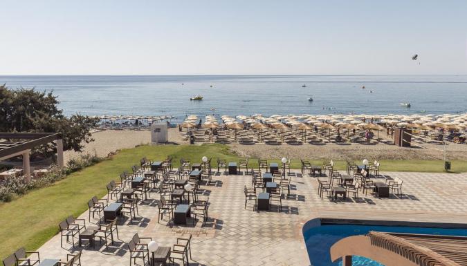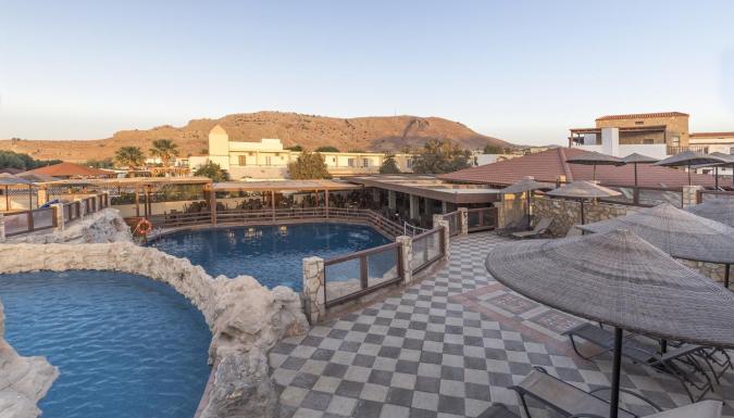 Пятизвездочный отель Costa Lindia, работающий по системе «все включено», расположен на пляже Лардос на острове Родос. Из окон открывается вид на Эгейское море.