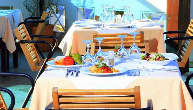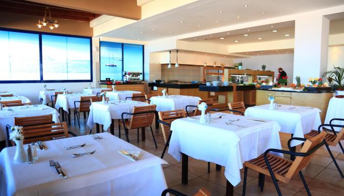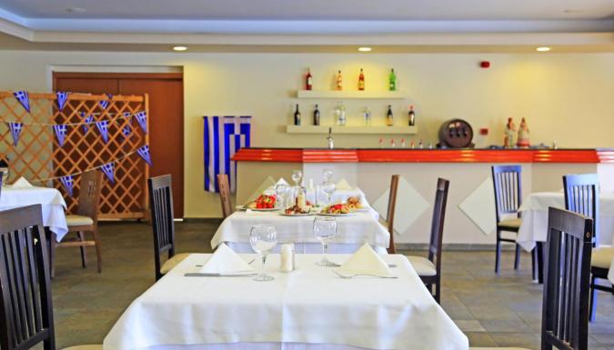 3 ресторана a`la carte: Panorama на 200 мест (19:00-22:00, бесплатно); Sirtaki на 100 мест (19:00-21:00, бесплатно); Tratoria на 100 мест (24 часа, после 22:00 только пицца,бесплатно)