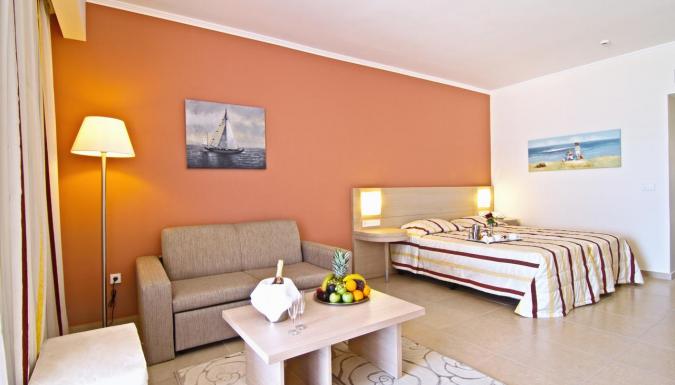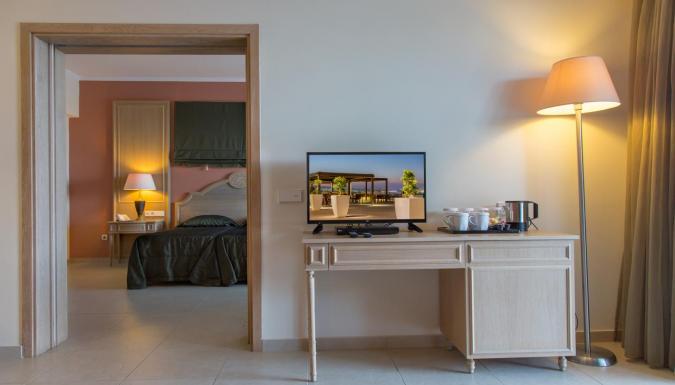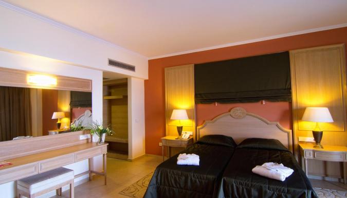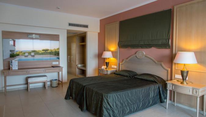 Кондиционер (01/06-30/09), мини-холодильник, мини-бар (по запросу), спутниковое телевидение, LCD-телевизор, прямой телефон, платный высокоскоростной Wi-Fi интернет, сейф (бесплатно, помещается ноутбук), ванна/душ, фен, банный сет, набор для приготовления кофе/чая, пляжные полотенца в номере, меблированный балкон/терраса.
