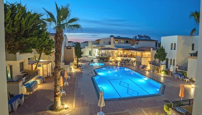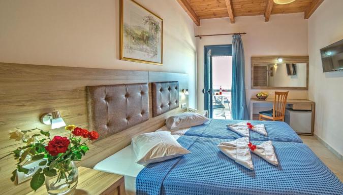 Четырехзвездочный отель Blue Aegean Hotel & Suites с открытым бассейном и детским бассейном расположен всего в 50 метрах от песчаного пляжа на курорте Като-Гувес.