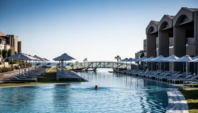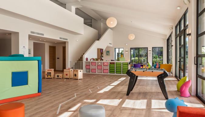 Детский бассейн + аквапарк (3 горки 1,30+ м, аква-башня 300 м от 3+ лет), мини-клуб, джуниор-клуб, анимация, детская площадка, высокие стулья в ресторанах, кроватка в номере, детское меню, няня (платно).