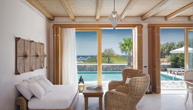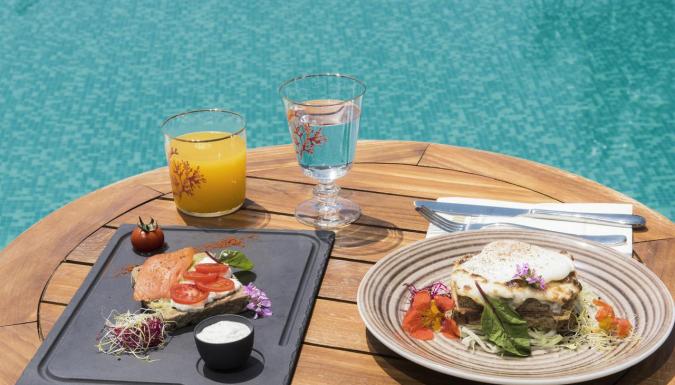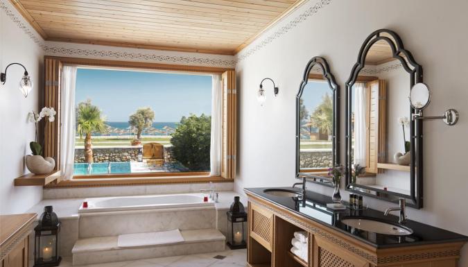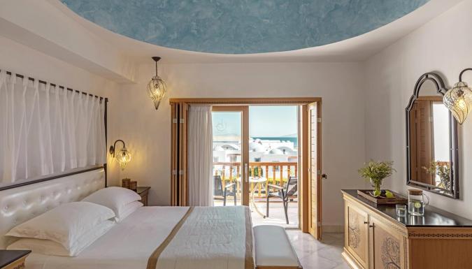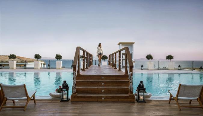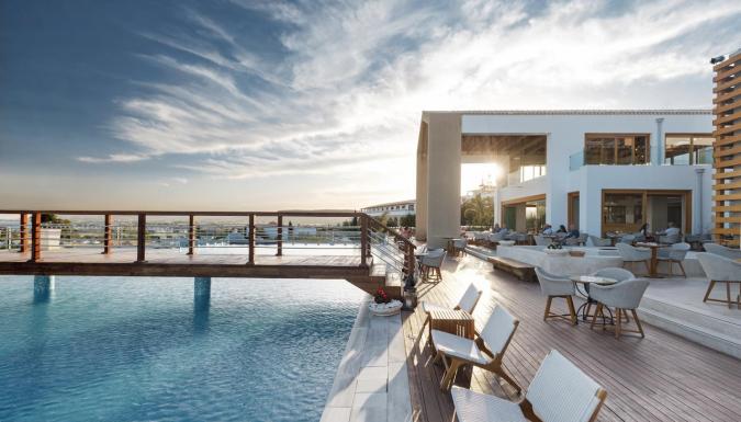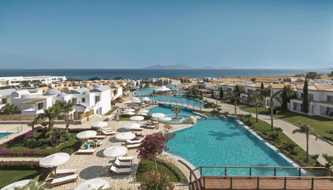 В 5-звездочном курортном спа-отеле Mitsis Blue Domes, расположенном у пляжа, к услугам гостей водный комплекс длиной 650 метров с 8 большими бассейнами и 6 общими бассейнами. Кроме того, в этом отеле с обслуживанием по системе «все включено» работает 10 ресторанов и 6 баров.