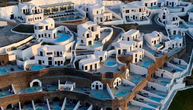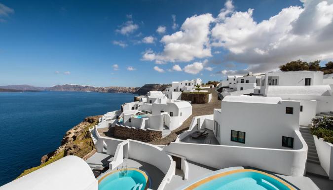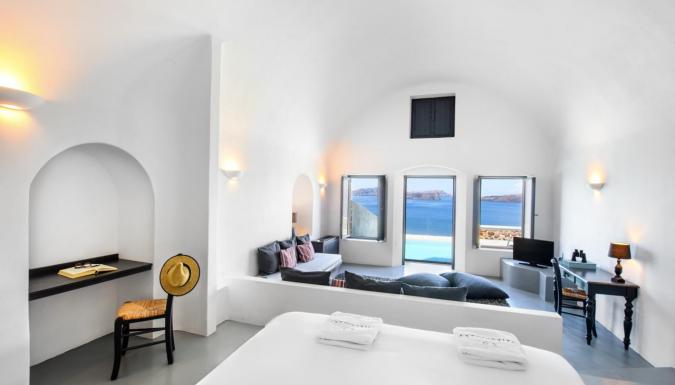 Пятизвездочный комплекс Ambassador Santorini Luxury Villas & Suites располагает элегантно оформленными номерами, люксами и виллами. Все они имеют собственный бассейн, а из их окон открывается панорамный вид на вулкан и Эгейское море.